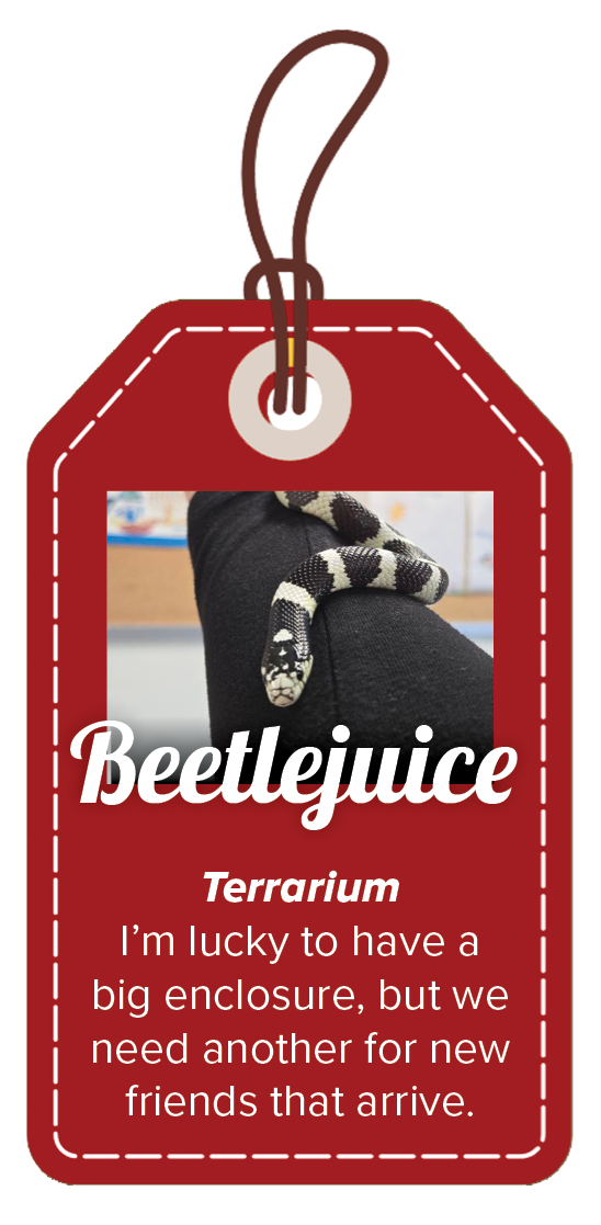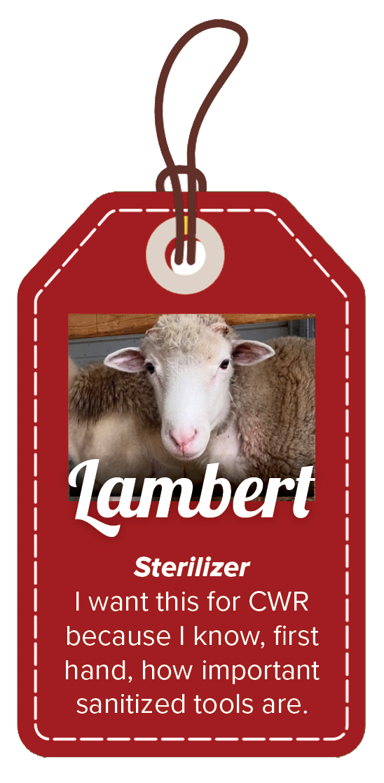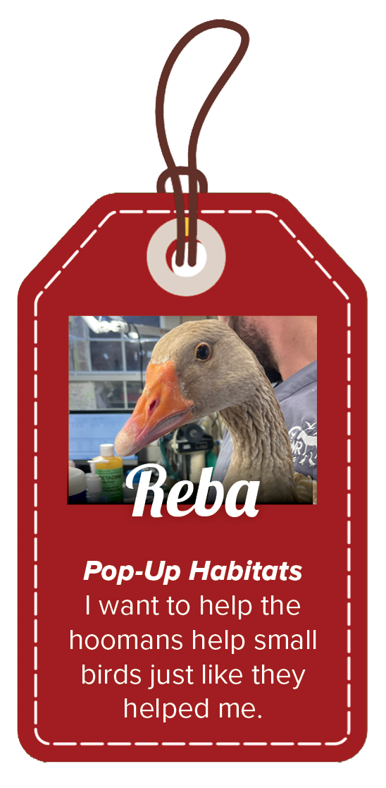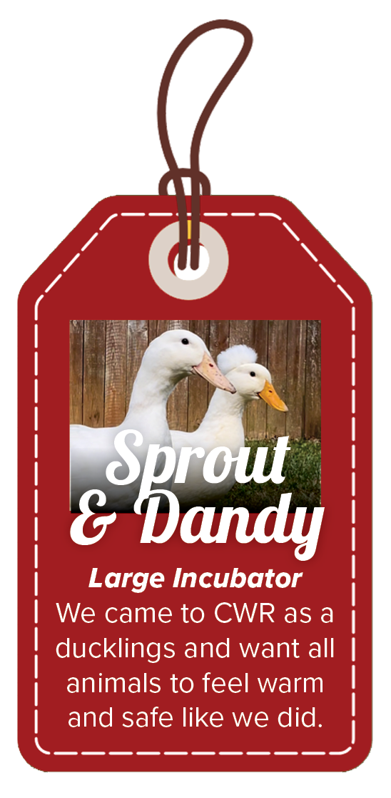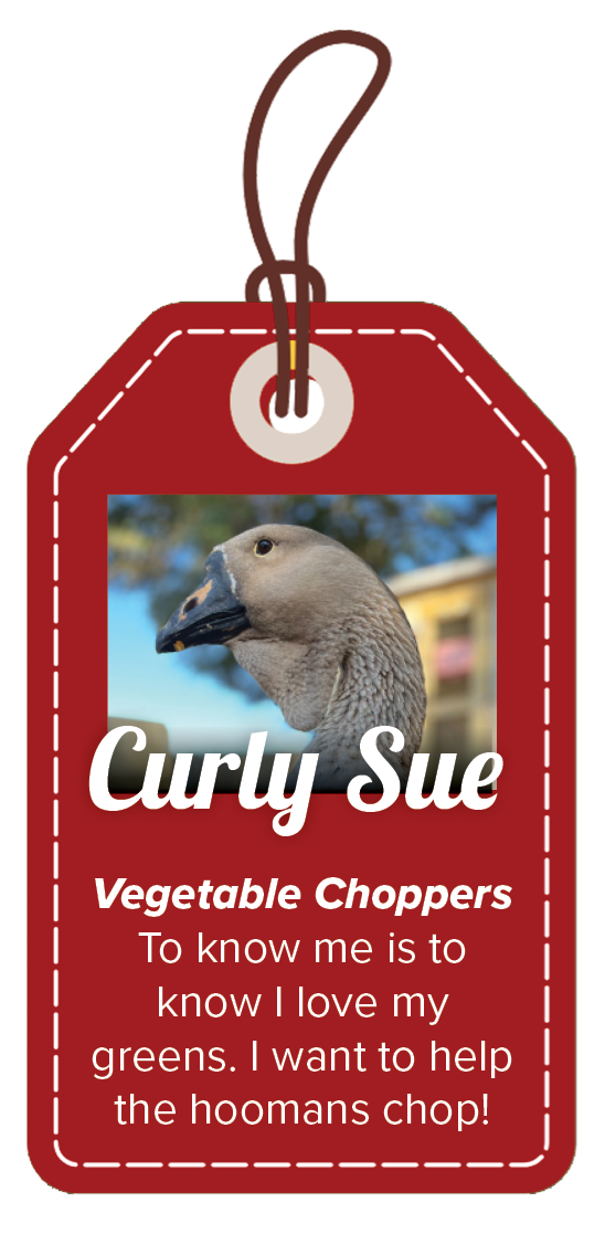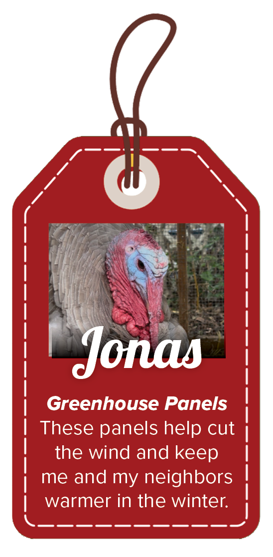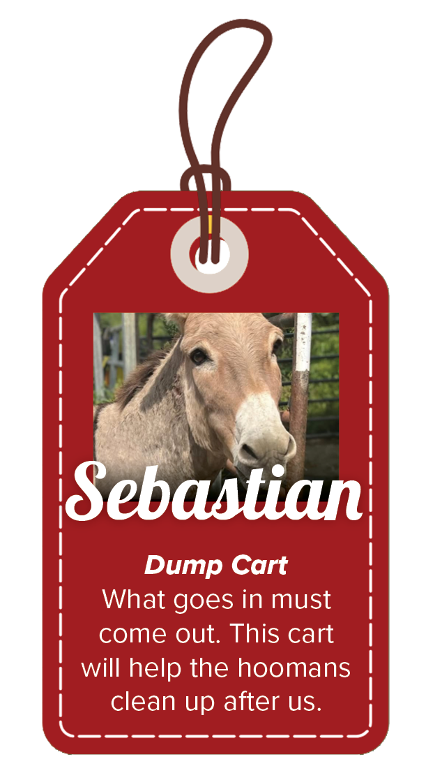 Some of our residents, who see everything that happens at the rescue and know what we need better than anyone, have crafted their own holiday wishlists. Click on their Holiday Wish Tags to peek at what they’re hoping to gift back to the rescue this season.
